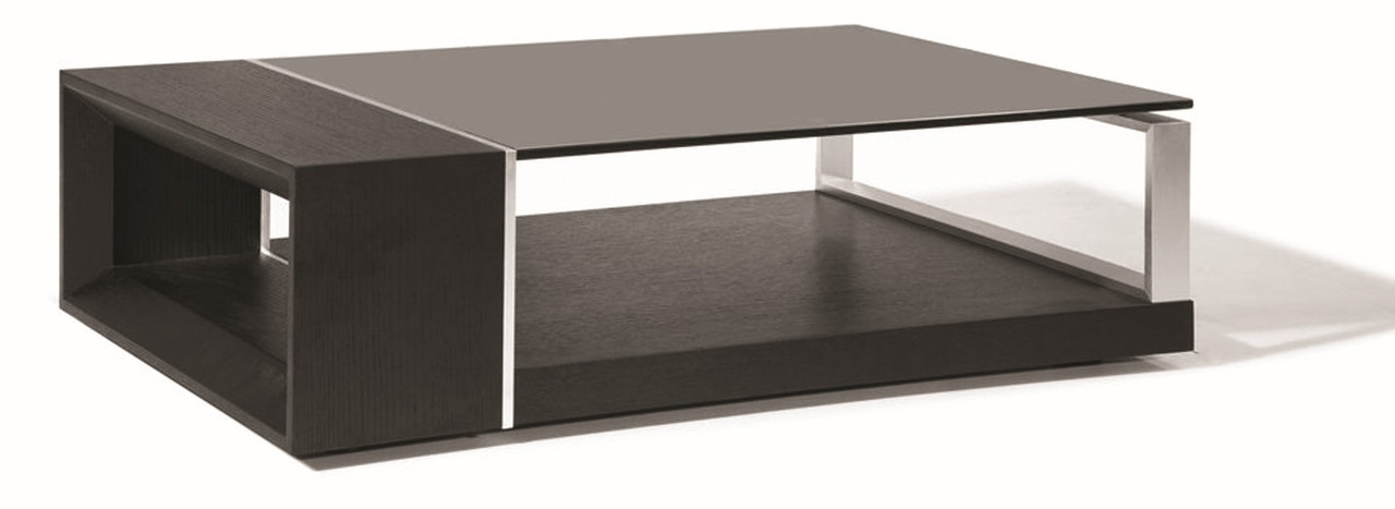 Wenge Veneer and Black Glass Top Coffee Table with Metal Accent 48 x 27 x 13