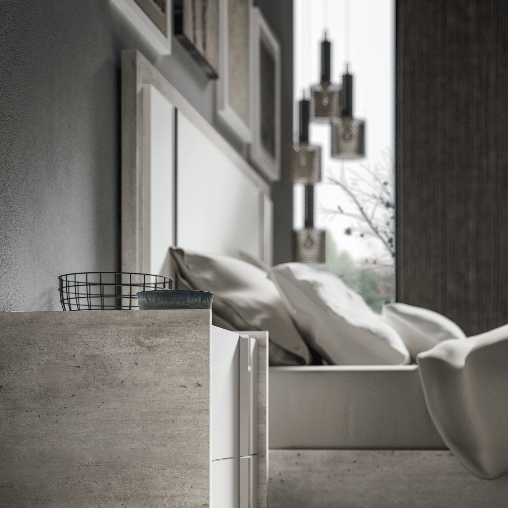 Infuse your home with the essence of modern Mediterranean luxury with the Treviso 48″ Bed. This exquisite piece, a highlight of our Bedroom collection, is meticulously crafted in Italy by Status Italy for ESF. It showcases a stunning architectural presence, blending high-gloss white panels with the organic texture of grey eco-stone. This sophisticated contrast creates a warm yet contemporary atmosphere, perfect for a refined sleeping sanctuary.