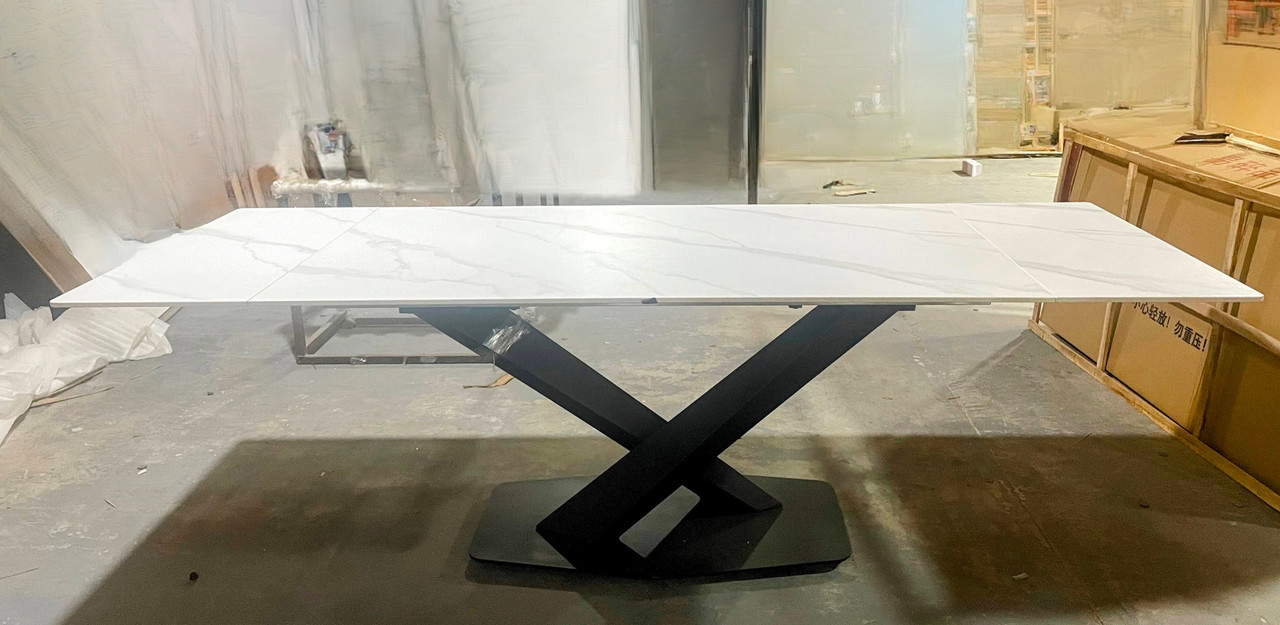 510 Vector Extension DT 63/94.5 x 35.5 Carrera Style Porcelain Top and V-Shaped Metal Base