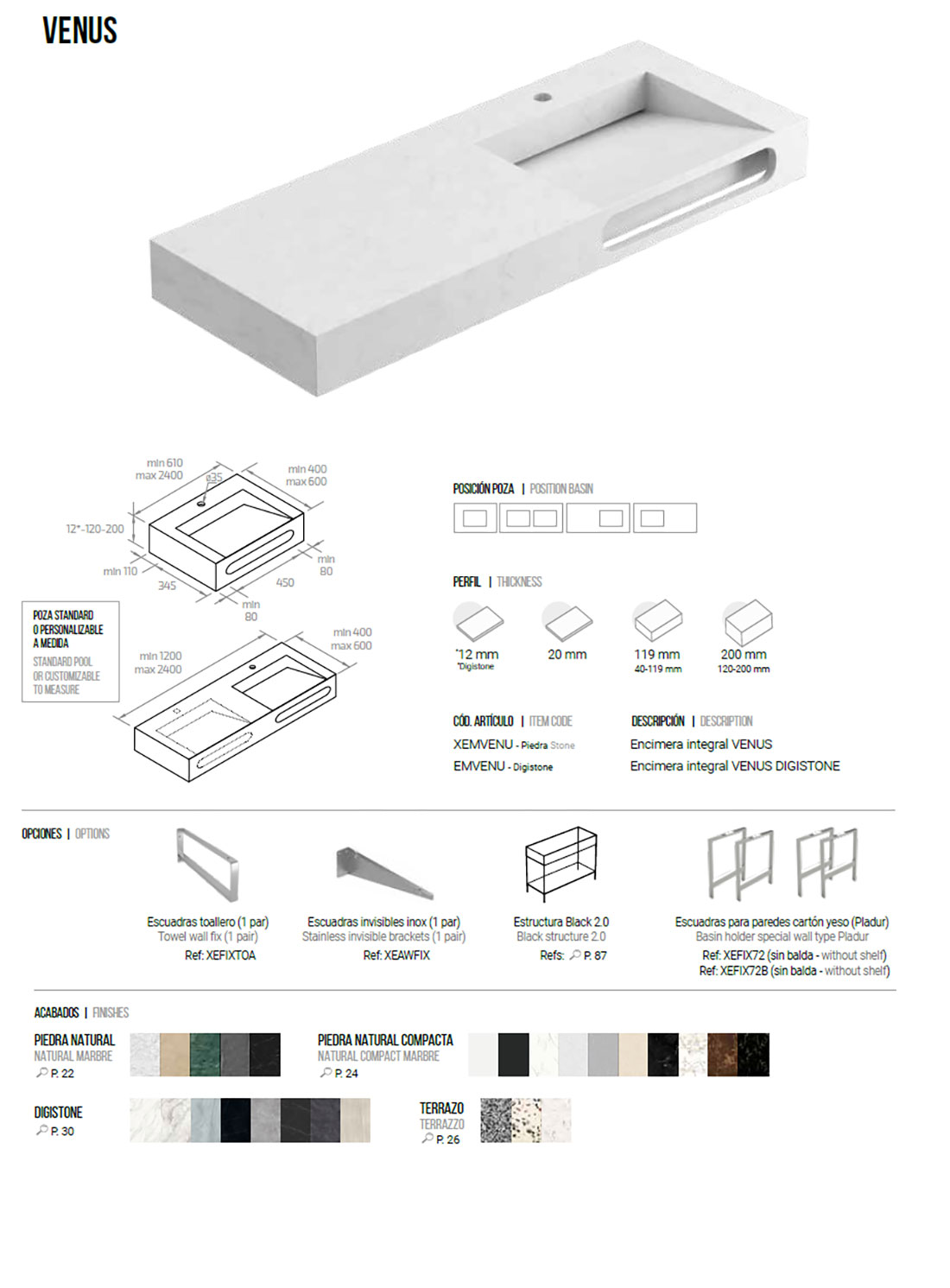 Crafted from premium marble and marble-looking materials, the Venus Sink is also available in Special Order Materials to suit your specific interior vision. Every curve and line is meticulously designed to provide a clean, uncluttered look while ensuring the practical usability required for daily life. The result is a versatile module that functions as much as a piece of art as it does a functional bathroom component.