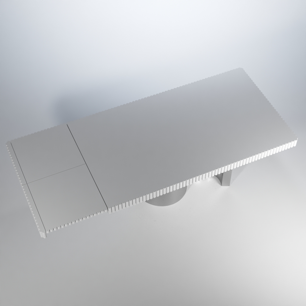 Built for both durability and style, the table is constructed from high-quality wood-based panels and MDF. The striking white and silver color palette offers a clean, bright look that complements any upscale interior. Its ingenious design includes two extensions, providing the versatility needed for hosting intimate family dinners or larger festive gatherings without compromising its sleek, wave-inspired profile.