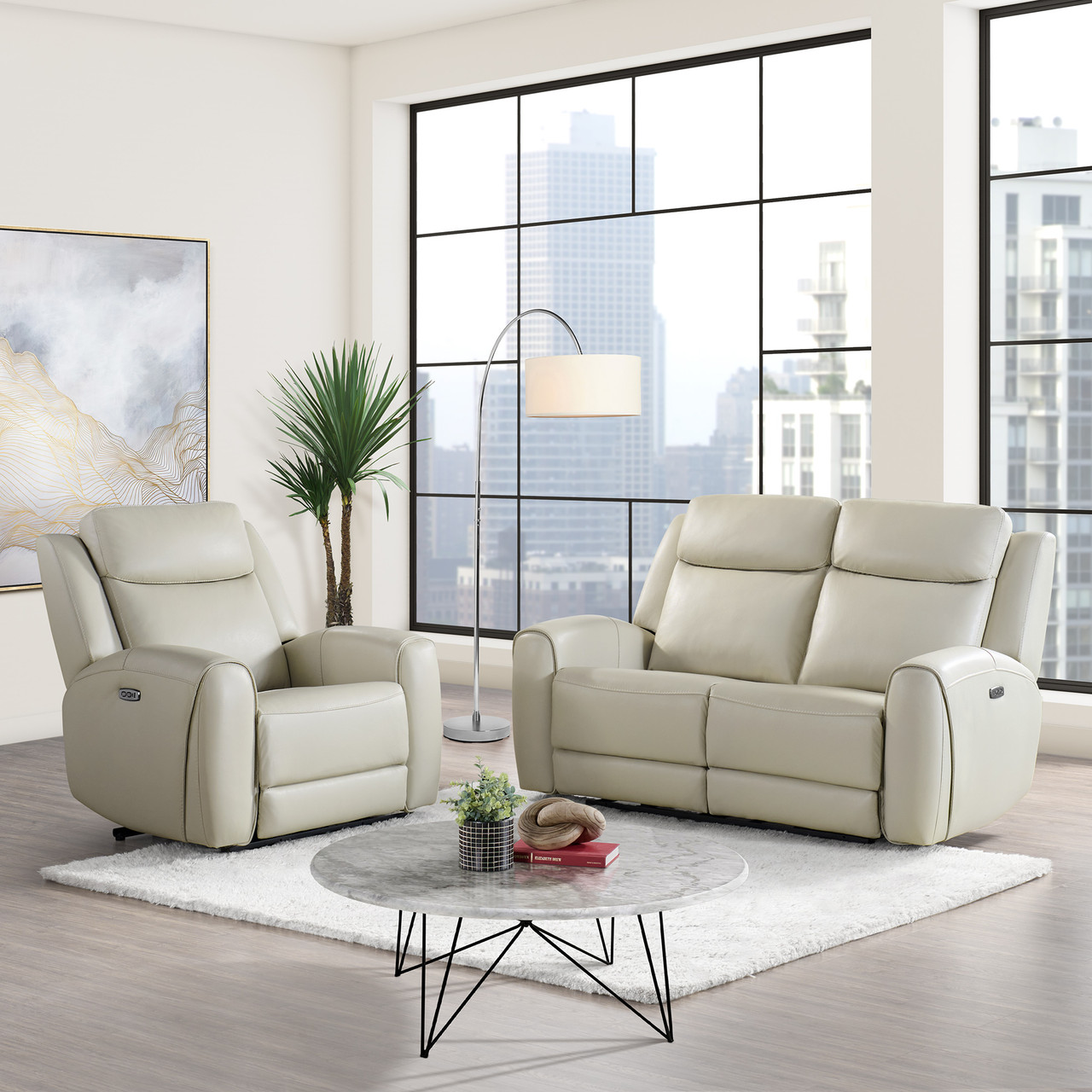 Wonder Leather Sofa in Sandstone M1205 with LAF Recliner + RAF Recliner 77 x 38 x 40.5