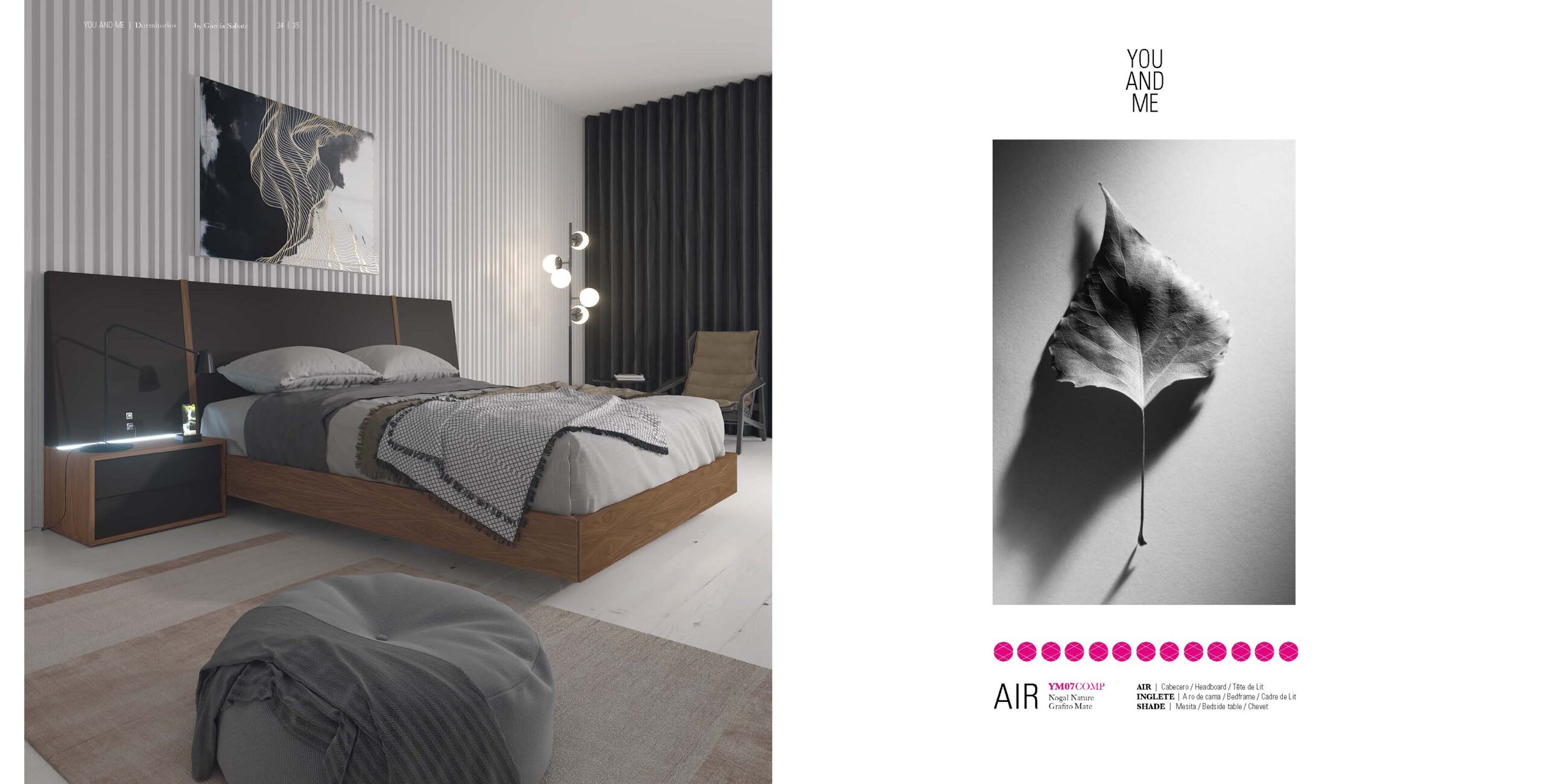 The ensemble is centered around the striking AIR Headboard and the sleek INGLETE Bedframe, creating a focal point that exudes elegance and tranquility. Accompanied by the functional and stylish SHADE Bedside table, the YM07 offers a cohesive look that transforms your sleeping quarters into a refined sanctuary. Each piece is constructed with meticulous attention to detail, utilizing high-quality materials and special order finishes to ensure a premium feel.