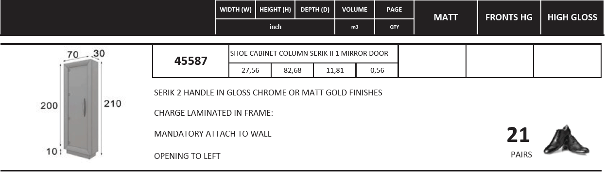 Elevate your home organization with the Z48, a standout piece from the Franco Antike Shoe cabinets collection. Expertly crafted in Spain, this shoe rack represents a new era of design for Franco Furniture, blending refined elegance with modern utility. Each detail of the Z48 reflects a commitment to sophistication, turning a functional storage item into a statement of style. Constructed from a durable wood-based panel and MDF with special order materials, this cabinet is designed to last while maintaining a sleek, high-end aesthetic. Perfect for entryways or dressing rooms, its slim profile floods any space with grace and order. Please note that for stability and safety, this unit must be attached to the wall. Whether you are looking to declutter your footwear collection or enhance your interior decor, the Z48 offers a unique blend of Spanish craftsmanship and contemporary flair that seamlessly integrates into the most refined American homes.